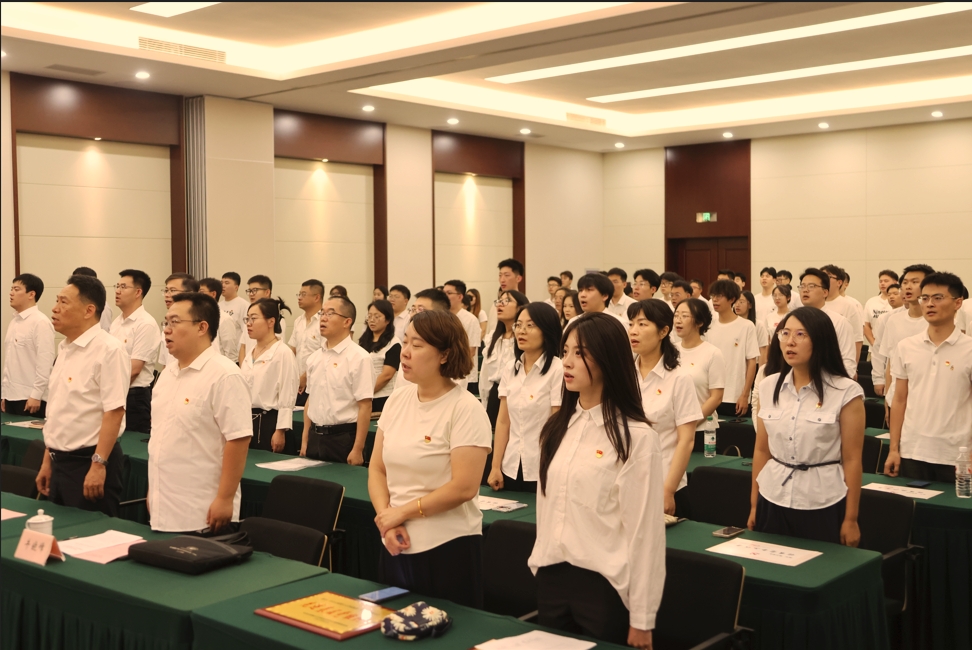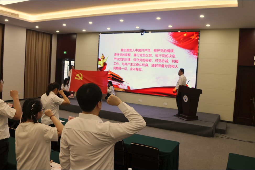 学院党委在表彰会上举行的新党员入党宣誓仪式,在场的党员重温入党誓词,游志勇书记领誓。