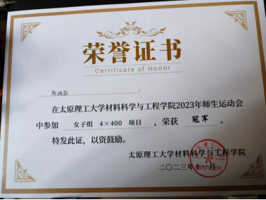 陈婧茹,女,中共预备党员,yl6809永利集团材料科学与工程2025届毕业生,曾担任材科2102班文艺委员,校档案室助理等职务,曾获得大学生能源经济学术创意大赛山西省二等奖,yl6809永利集团金相大赛一等奖,yl6809永利集团大学生节能减排社会实践与科技竞赛二等奖等多个奖项,主持大创项目,并以优秀结题,多次获得国家励志奖学金,学业奖学金一等奖,同时多次获得yl6809永利集团优秀学生干部、yl6809永利集团优秀共青团员、三好学生等多项荣誉,目前直博至yl6809永利集团。