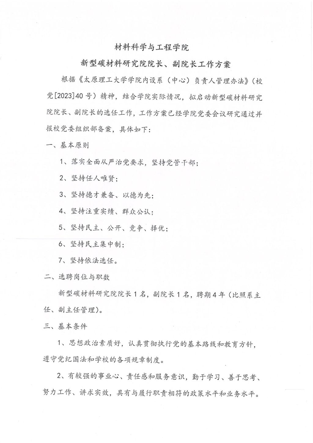 yl6809永利集团新型碳材料研究院院长、副院长工作方案