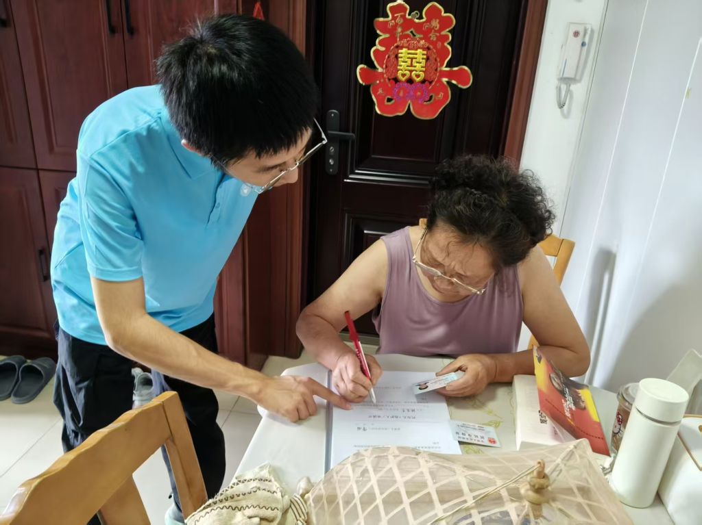 面对智能手机操作和各类信息表格常让老人们感到困惑的难题,实践队员化身贴心“数字助手”,一对一、手把手地指导老人填写各类常用信息。从字号的放大到选项的勾选,从电子医保激活到简单手机功能设置,队员们不厌其烦,细致讲解每一步操作要点和背后的安全逻辑。耐心解答与温暖陪伴,让繁琐的表格不再冰冷,填写的笔触也多了几分安心,切实解决了老人“指尖上”的急难愁盼。