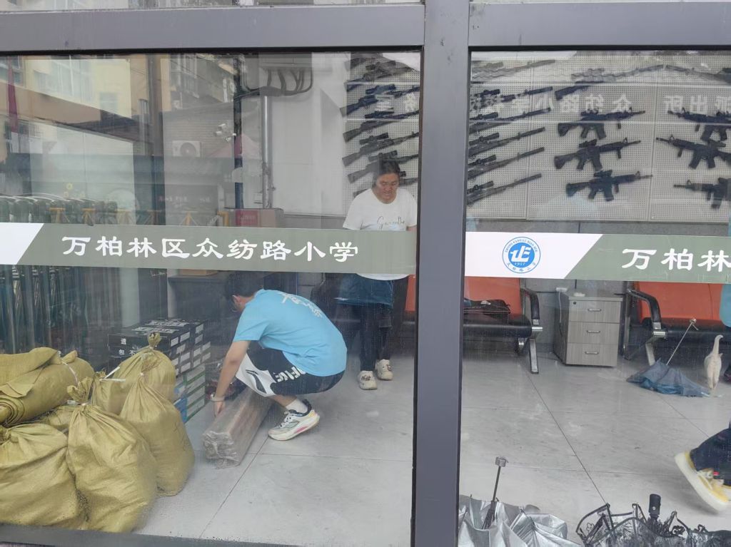 雨水敲打着车窗,志愿者们无暇顾及自身淋湿,心中牵挂的是校园安全。载满编织袋、应急照明灯等防汛物资的车辆稳稳停靠在纺织苑小学校门。卸货、搬运、清点交接,每一个环节都在雨中高效有序地进行。汗水与雨水交织,浸透了衣衫,却未能模糊志愿者们专注的神情。当校园工作者从志愿者手中郑重接过最后一件物资,一句“太及时了,谢谢你们!”让所有辛劳瞬间化为值得。“想到孩子们和校园能多一分保障,衣服湿透也值得。”一位志愿者抹去脸上的雨水,笑容真挚而明亮。这些带着雨滴温度的物资,为校园筑起了一道看得见的“安心堤”。
