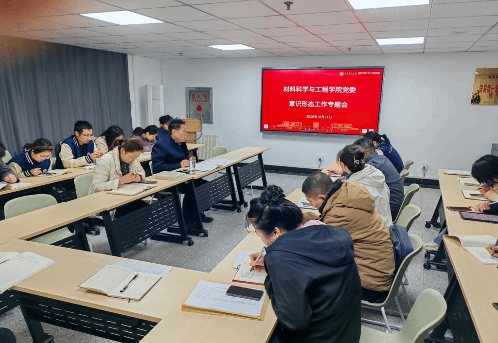 游志勇书记在讲话中深刻阐述了意识形态工作 “极端重要性” 的核心内涵,强调高校作为意识形态工作的前沿阵地,材料学科作为科技创新的关键领域,更要始终坚守政治底线。针对当前意识形态领域存在的安全问题,他提出三方面明确要求:一是严抓阵地管理,守好 “责任田” ,党组织需全面加强对舆论宣传阵地的统筹管控,网络平台要建立 “快速响应 - 精准研判 - 科学处置” 闭环机制,宣传栏板实行 “先审批后发布” 制度,确保各类阵地可管可控;二是精准研判风险,筑牢 “防火墙” ,重点聚焦教育教学、网络舆情、信息安全、出版物品四大领域,结合材料学科科研合作频繁、学术交流密集的特点,特别警惕涉外学术活动中的意识形态渗透风险;三是坚持预防为主,织密 “防护网” ,学院需建立意识形态风险预警机制,定期开展风险排查,对苗头性、倾向性问题早发现、早干预,依法依规处置各类突发情况。