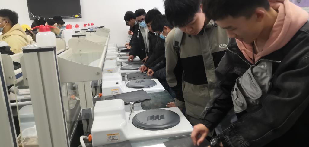 金相实验室程敏老师介绍了金相实验的来历、作用以及未来发展。介绍了金相实验的物品和实验步骤,同学们在程敏老师讲解后展开金相实验。实验过程中,程敏老师要求同学们注意实验安全,严格按照操作流程进行金相实验。张昭龙、李颖超同学负责现场逐一指导工作。