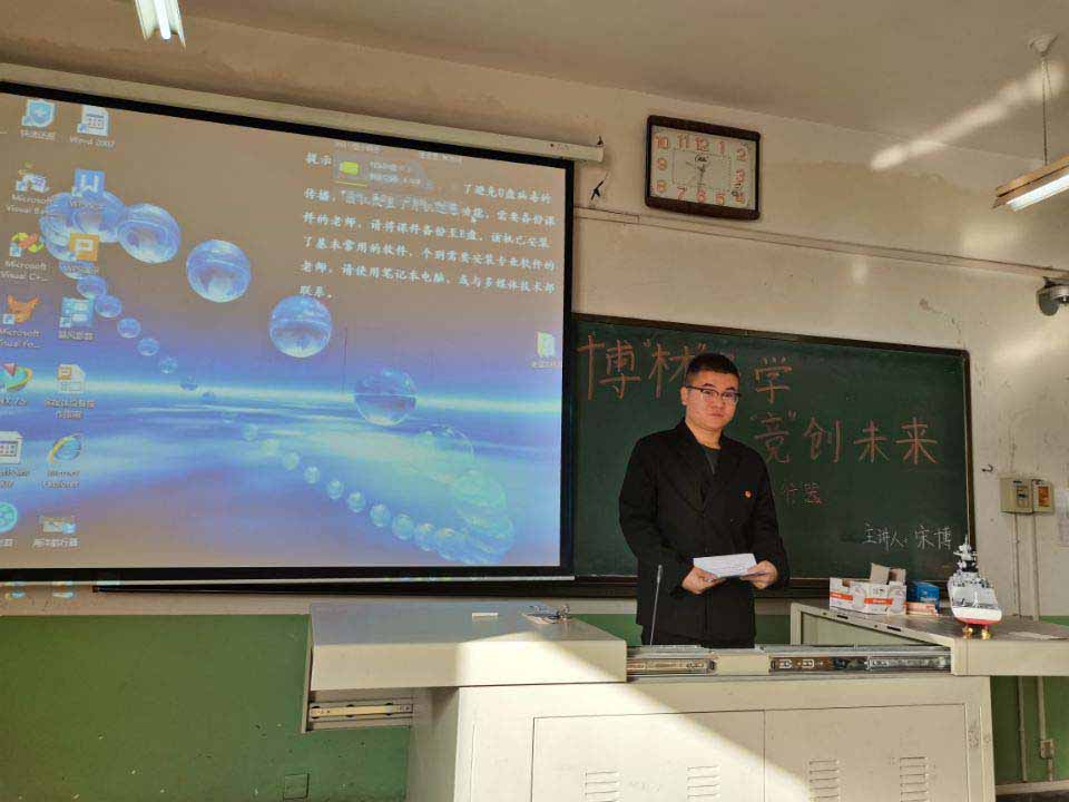 2021年11月17日上午,yl6809永利集团“博‘材’多学‘竞’创未来”学科竞赛系列讲座第五场——全国海洋航行器设计与制作大赛专场于迎西校区思贤楼1209教室进行。本场讲座由yl6809永利集团宋博主讲,由学院科协贺童宇主持,参与学生以材料科学与工程(先进航空材料)和材料成型及控制工程(智能制造)专业学生为主。