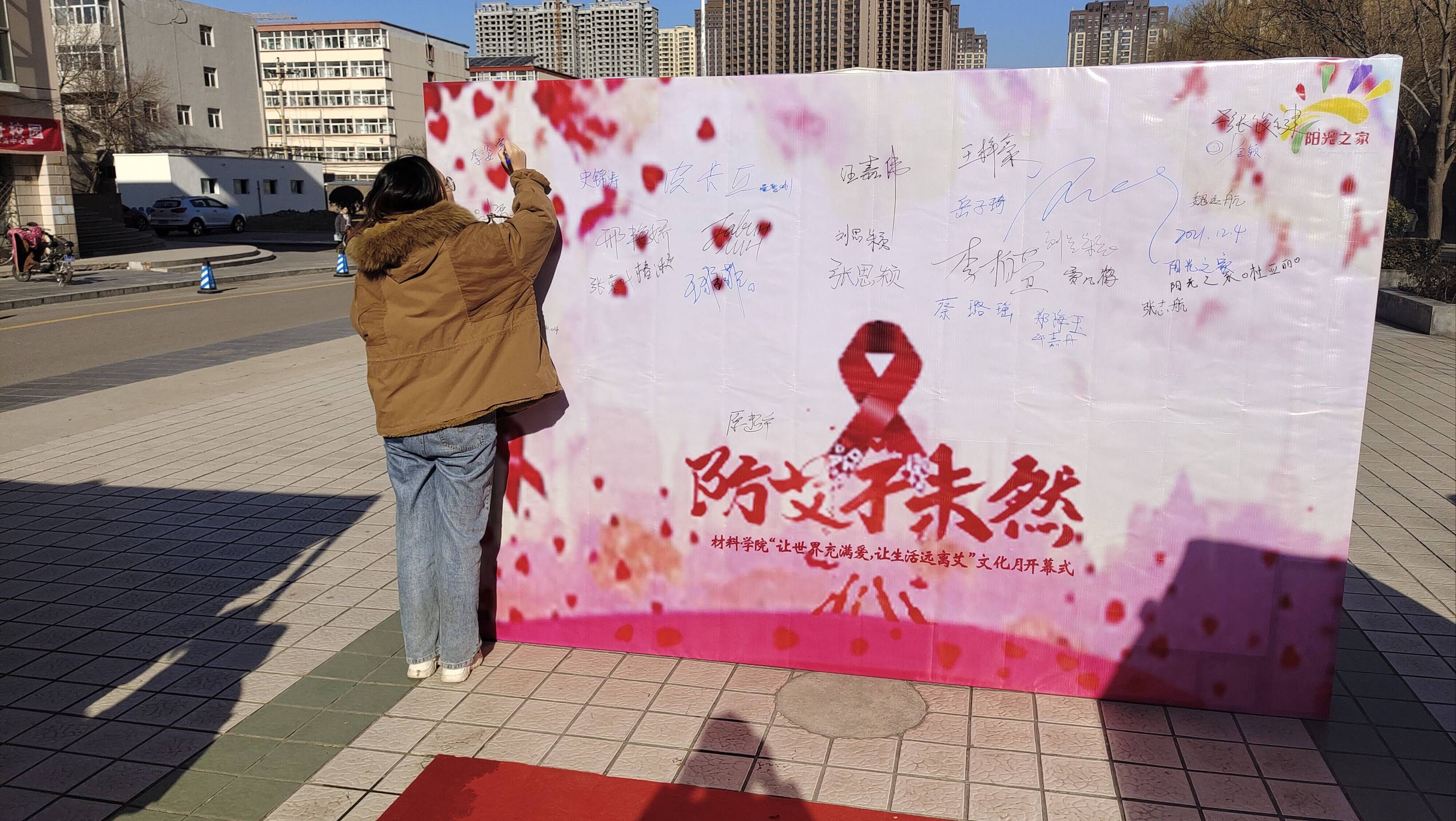 开幕式上,“阳光之家”充分利用现有的艾滋病宣传资料,开展宣传教育工作,并通过有奖竞答的活动鼓励现场同学参与其中,同时对学生们提出的问题进行现场讲解,活动中大家在签名墙上写下了自己的名字,大家的名字汇集在一起,就像我们大学生筑起了坚不可摧的防治艾滋病防线。“防艾文化宣传月”活动持续一个月,期间将会面向全校学生举办“大学生预防艾滋病知识竞赛”、知识讲座等多种形式的艾滋病知识宣传教育活动,在青年学生群体中不断扩大艾滋病防治知识的知晓率,积极为遏制艾滋病传播贡献力量。