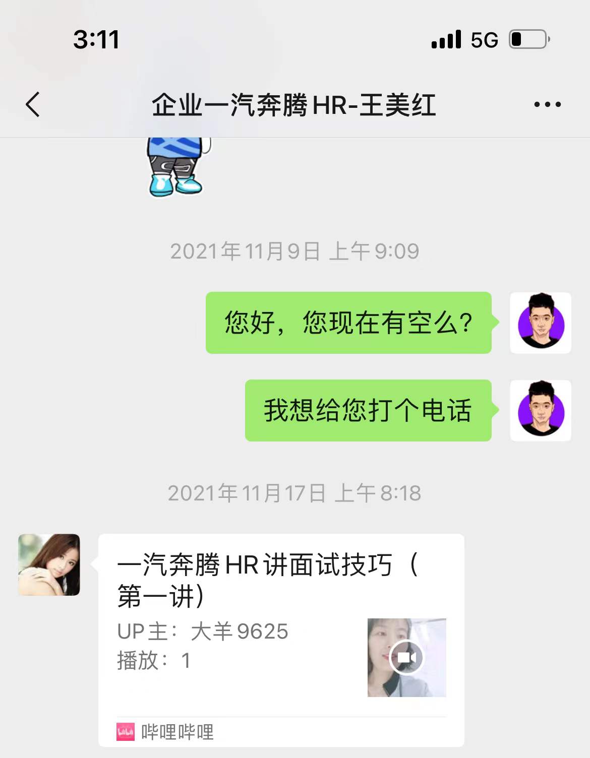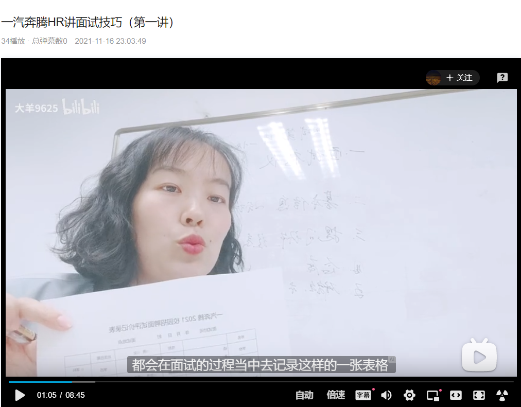 11月17日,一汽奔腾校友王美红在哔哩哔哩平台为yl6809永利集团学子开展就业指导生涯课程。