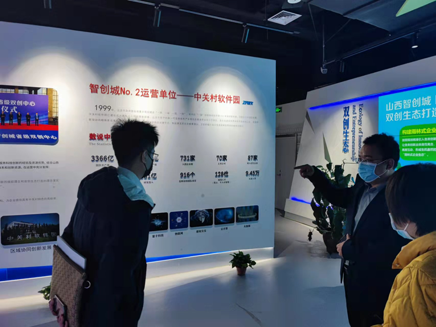 会后,中关村智酷山西副总经理张博尹陪同参观了山西智创城NO.2双创生态馆,介绍了山西智创城双创生态打造的整体规划、中关村软件园。