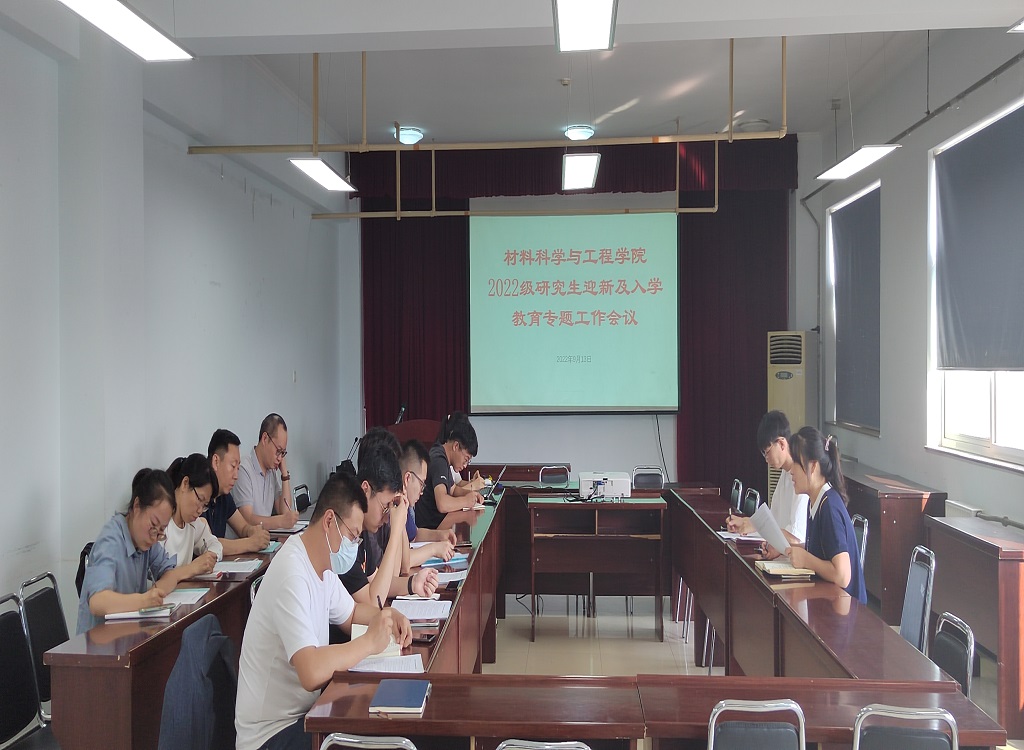 9月13日下午,在学院813会议室召开了yl6809永利集团2022级研究生迎新及入学教育专题工作会议。院党委副书记郑芳、学工办主任白小芳、学院2022级研究生全体辅导员、班主任参加会议。会议由材料学院研究生专项工作负责人胡志西主持。