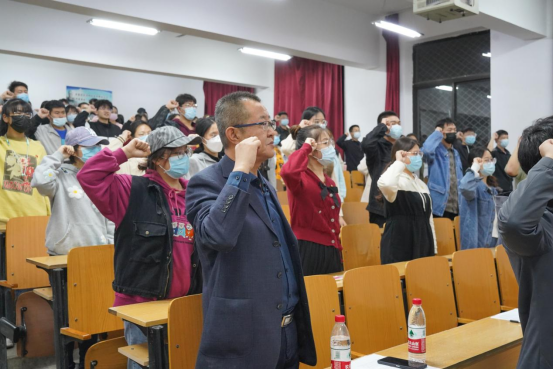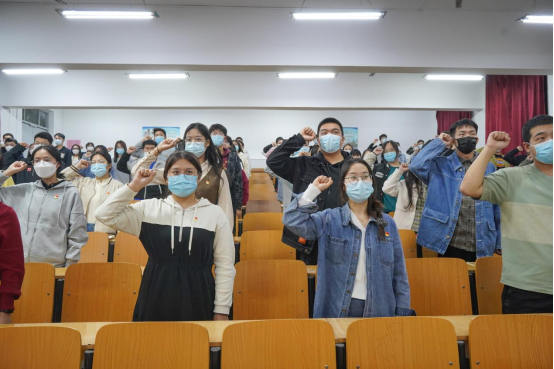 会议最后,许通陆带领全体党员重温入党誓词,坚定理想信念,履行党员义务,执行党的决定,严守党的纪律,为我校疫情防控工作,充分发挥党支部的战斗堡垒作用,发挥党员的先锋模范作用,从严从紧、从细从实,关键时刻敢于“亮身份、亮旗帜”,让“我是党员我带头”成为疫情防控最强好声音,让党旗在防控一线高高飘扬。