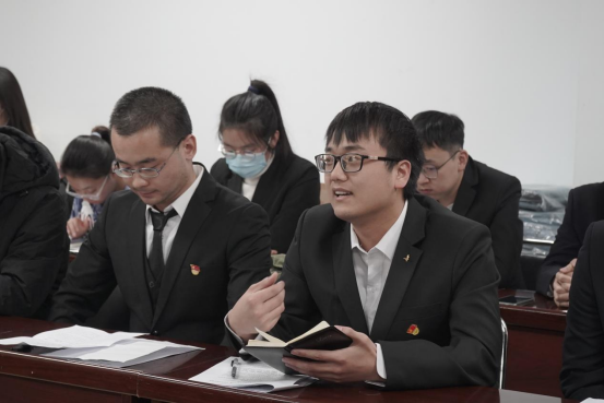 会议最后,全体参会人员面向党旗,重温了入党誓词,由许通陆领誓。