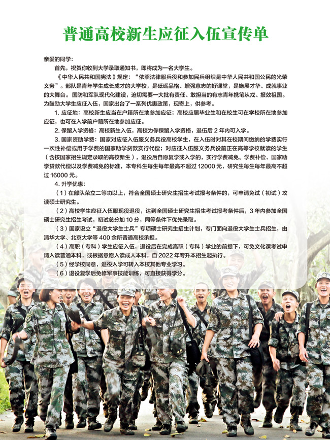 普通高校新生应征入伍宣传单