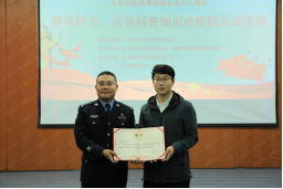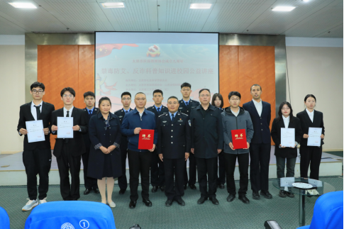 最后,张俊和警官向太原市扶弱帮困协会会长武亮、yl6809永利集团团委负责人许通陆颁发“禁毒宣传公益大使”聘书,向yl6809永利集团学生代表李雨辰、徐钰萌、张恩瑞、高泽天、金骏豪等5位同学颁发“禁毒科普宣传员”聘书。