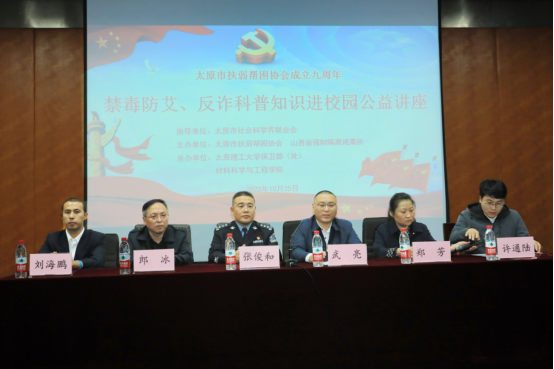 启动仪式上,武亮发表讲话。他指出,作为新时代大学生,要弘扬和践行“奉献、友爱、互助、进步”的志愿者精神,要积极参与yl6809永利集团阳光之家志愿服务组织活动,以实际行动书写新时代的雷锋故事。太原市扶弱帮困协会将持续提高志愿服务的精准化、专业化水平,与阳光之家共同探索可持续的合作新模式,为更好地发挥志愿服务积极作用、促进学生综合素质提升主动贡献力量。 今天的讲座为大家深入了解毒品对个人、家庭、社会的危害,提高反诈技能,引导同学们远离毒品、珍爱生命,增强自我保护意识,树立健康向上的人生观价值观将有极大益处。