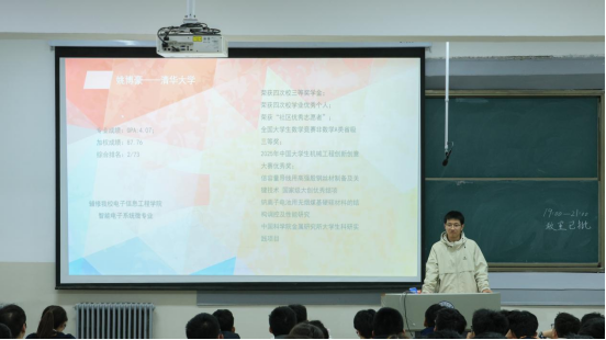 分享会上,各位优秀学子从自身经历出发,带来了多维度、深层次的干货分享:成功跨保至清华大学的姚博豪,以其“材料+电子信息”的复合背景,为同学们展示了跨学科发展的无限可能,打开了专业视野的新窗口;同样保研至浙江大学的路景宇和李云飞,则分别从“学业标杆”和“竞赛先锋”的角度提供了宝贵建议。