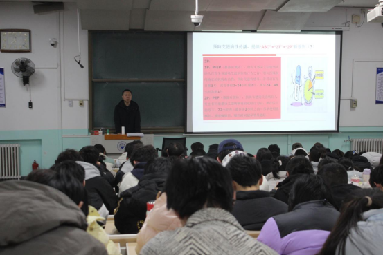结合高年级学生及研究生的社交特点与认知深度,郝瑞岗副主任结合太原市艾防工作实际与全国青年学生感染案例,系统讲解了艾滋病的流行趋势、性传播风险防控、暴露后72小时阻断等关键知识,特别强调了规范治疗对控制病情的重要性及国家“四免一关怀”政策的保障作用。在互动环节,同学们积极参与,现场氛围热烈,反响良好。